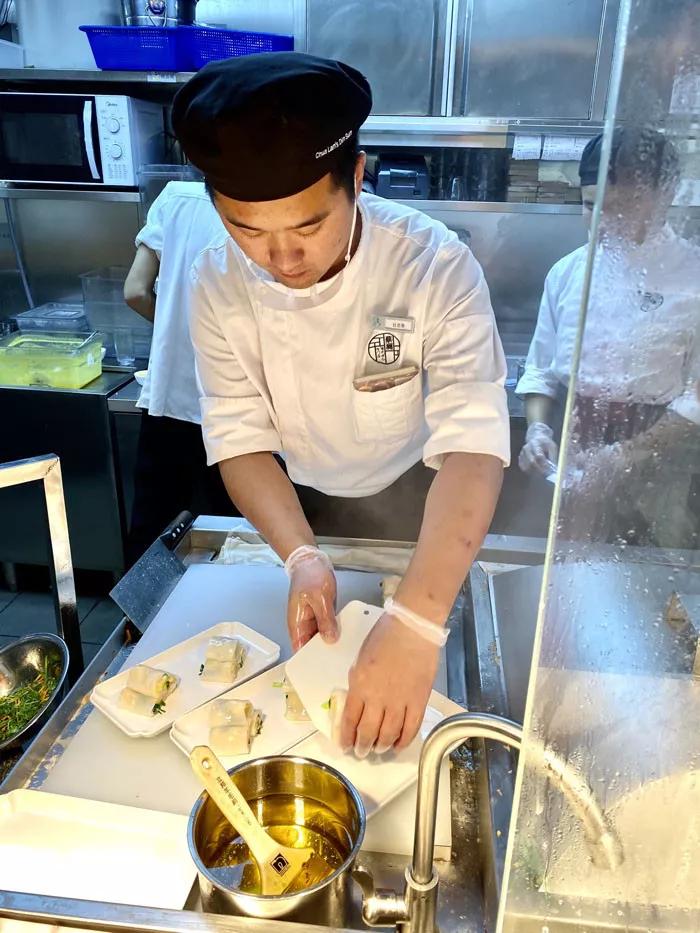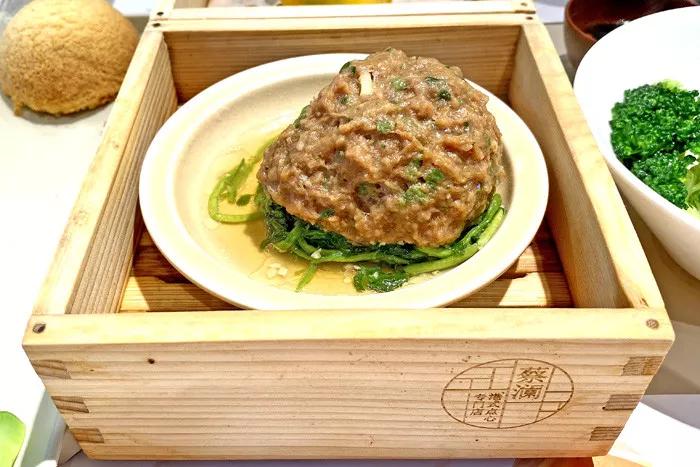 功夫不负有心人,终于轮到了期盼已久的我们,当一盘盘菜名早已印记在脑海中的美味端到眼前,稍微抿抿嘴唇,小心地掰开酥皮山楂叉烧包,轻夹 赛螃蟹芙蓉蛋白春卷,闻着自然发酵的古法马拉糕香气,舍不得剪开的陈皮牛肉狮子头,要不是众多食客还在等待,我真想时光就此停止,仔细回味,慢慢享受食材的美味。